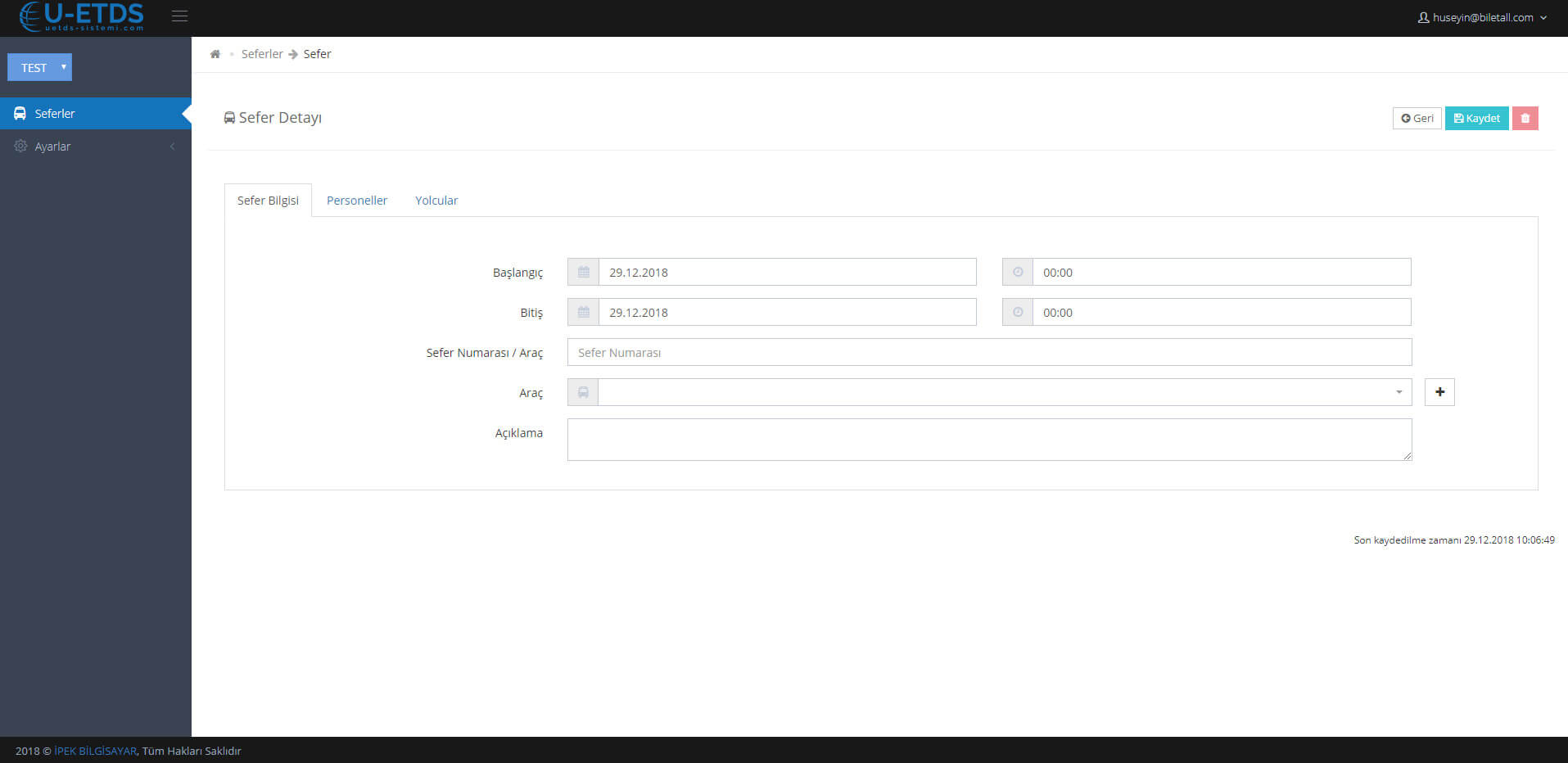 5- Bakanlığın U-ETDS sistemi için zorunlu olarak göndermenizi istediği Sefer tarihi, araç plaka, kaptan, güzergah, yolcu bilgileri vb. verilerinizi girip ücretsiz olarak Bakanlığa gönderin.